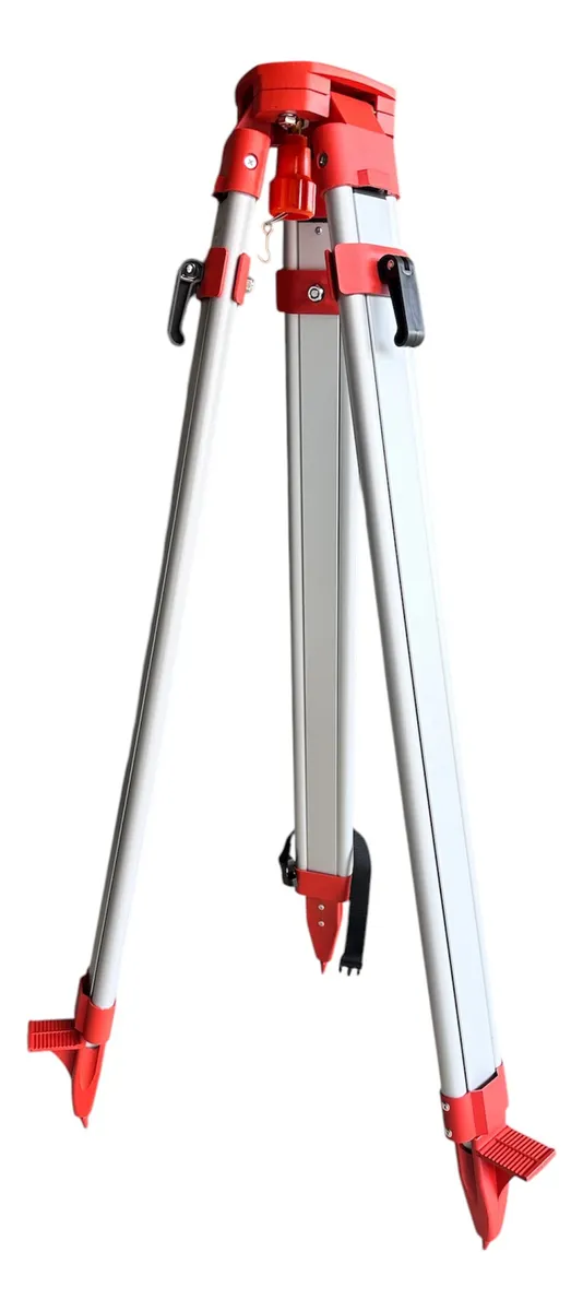 • Trípode topográfico de aluminio, ligero y resistente, con abrazaderas de bloqueo rápido, bisagras ajustables y correa de hombro. Altura máxima: 165 cm, plegado: 99 cm, rosca 5/8’’ y peso 4.08 kg.