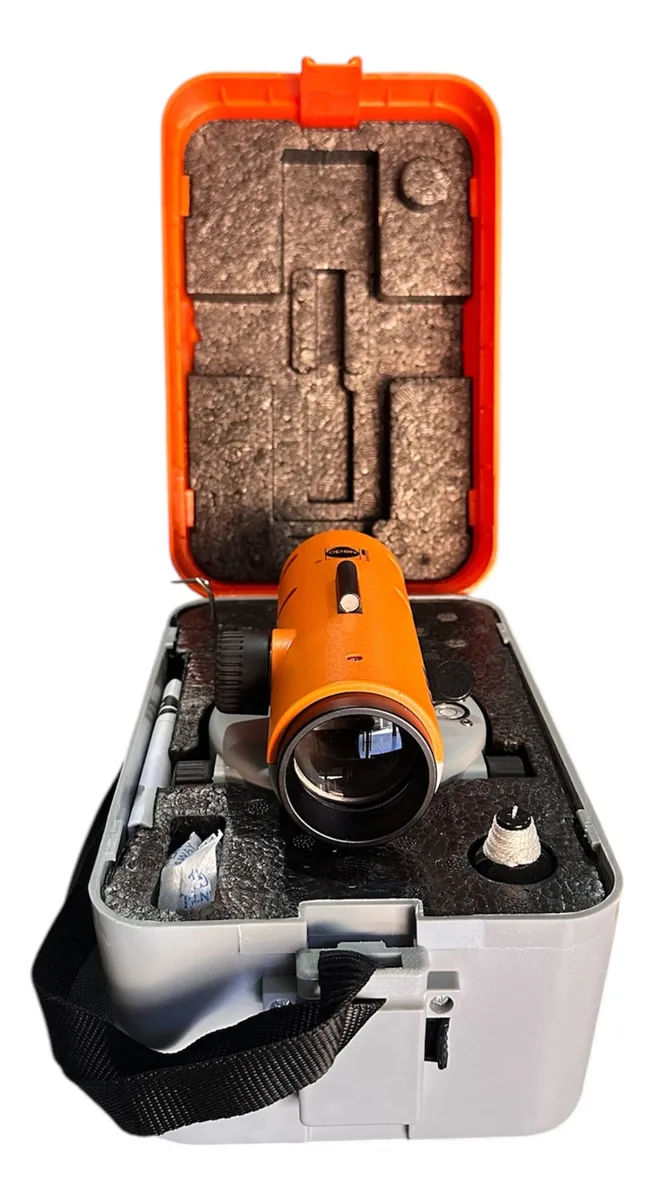 Incluye nivel óptico calibrado, estuche rígido y trípode de aluminio. Compacto, ligero y preciso, ideal para topografía, construcción e ingeniería civil.