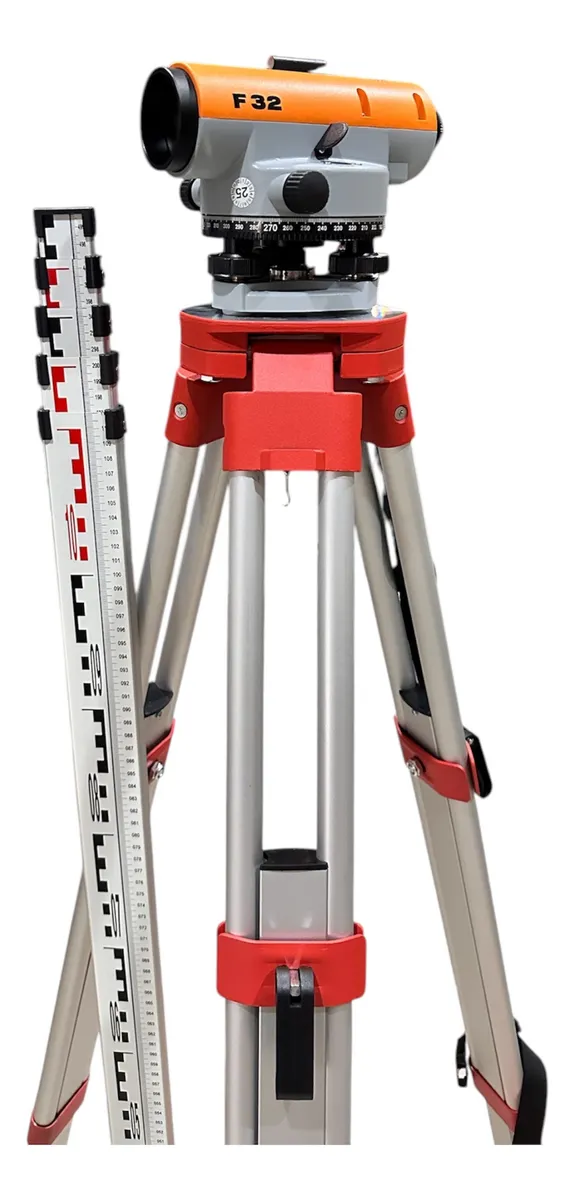 El Kit Topográfico Nedo F32 ofrece todo lo que un profesional necesita para realizar nivelaciones con precisión, durabilidad y confiabilidad en campo. Fabricado en Alemania, este kit está listo para usarse de inmediato, e incluye: