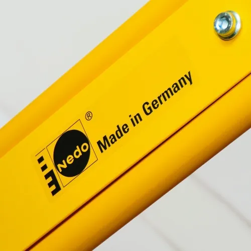 El trípode de madera Nedo, de manufactura alemana, combina la tradición de materiales naturales seleccionados (fresno y pino) con la innovación de un recubrimiento sintético de alta tecnología. Este recubrimiento protege permanentemente la madera contra el agua y la humedad, evitando deformaciones o hinchamientos, y ofreciendo una durabilidad muy superior a los trípodes con lacado convencional.