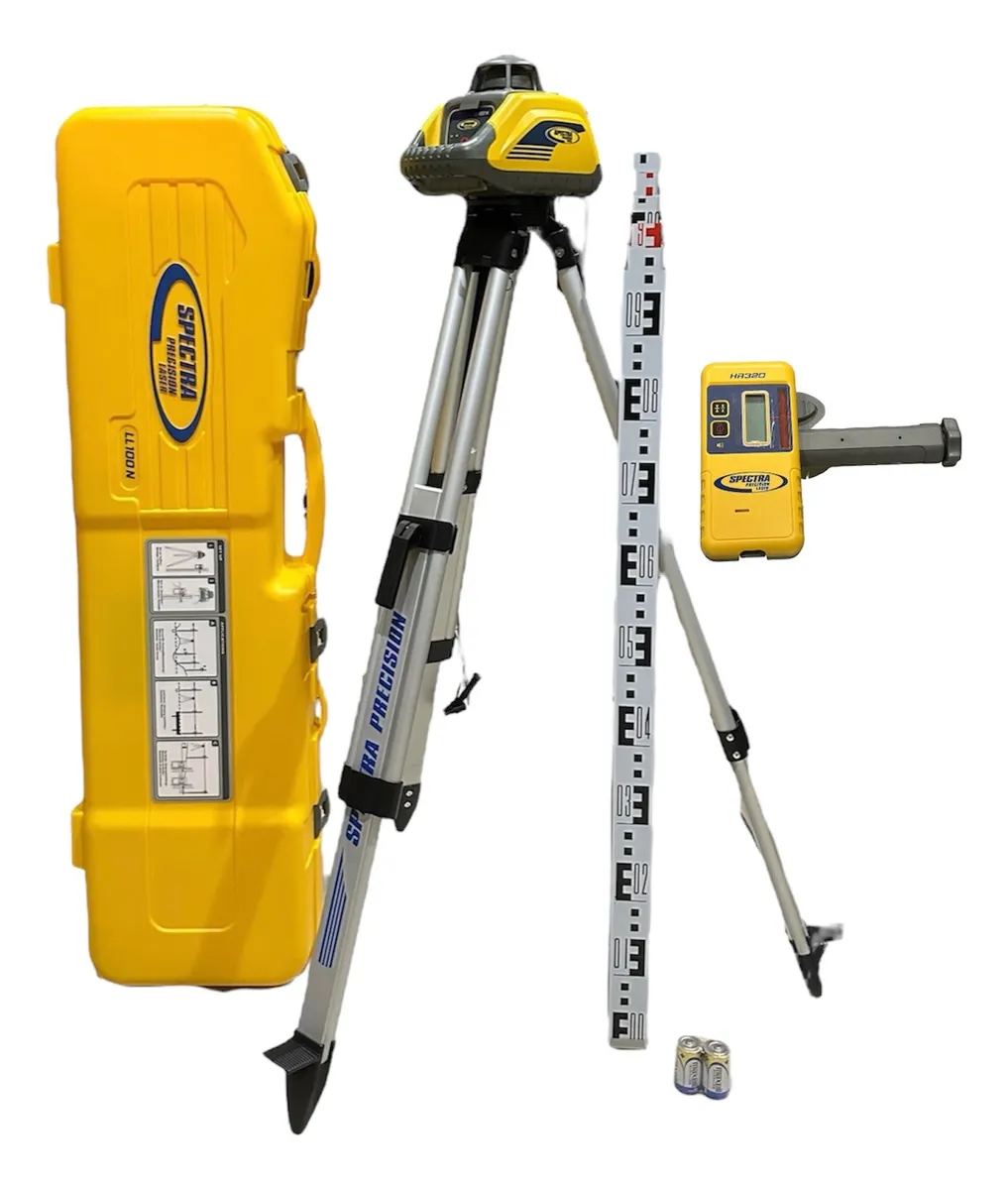 Nivel Láser Spectra Precision LL100N – Equipo completo de nivelación automática y precisa, incluye láser, receptor HR320, trípode, estadal y estuche de transporte. Ideal para obras y aplicaciones de construcción exigentes.